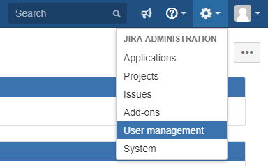 Select “User Management” in the top JIRA-Management menu to add the user directory to JIRA.